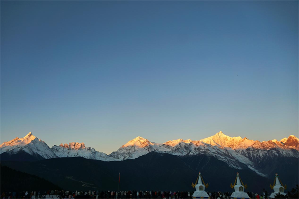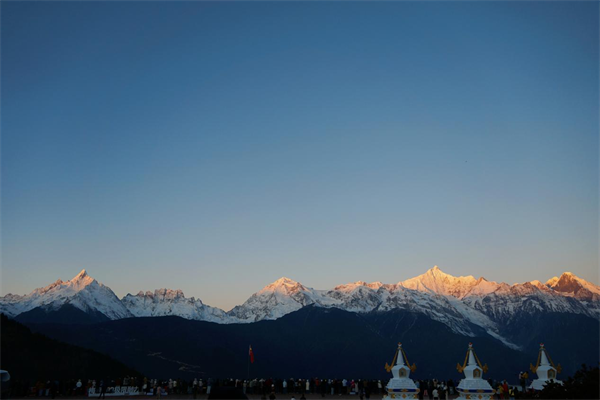 “冬衣”,迎来络绎不绝的游客,来云岭之巅,看日照金山梅里。(斯娜卓玛)