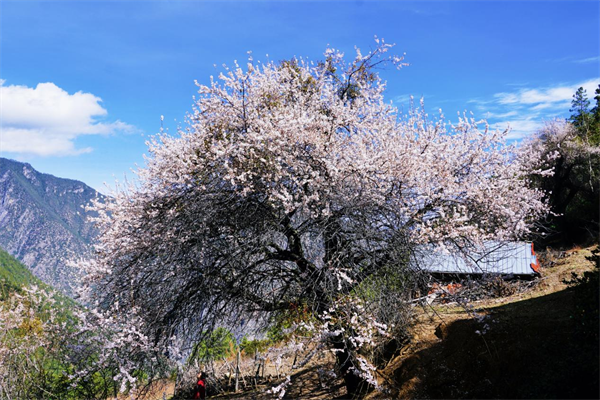 人间四月,百花渐次凋零,而云南迪庆德钦县奔子栏镇山间牧场的桃花却刚刚初绽。在繁华春色即将落幕的谷雨前夕,它们如同春天的最后一次回眸,肆意绽放。(斯娜卓玛 摄)