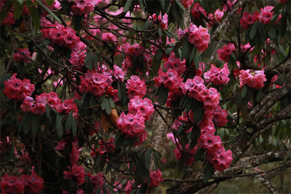 谷雨时节,维西县腊八底的高山杜鹃迎来盛放期。嫣红繁花缀满枝头,粉瓣晕染着春日的热烈,层层叠叠如云霞漫卷,在深绿枝叶间肆意舒展。(和柯 摄)
